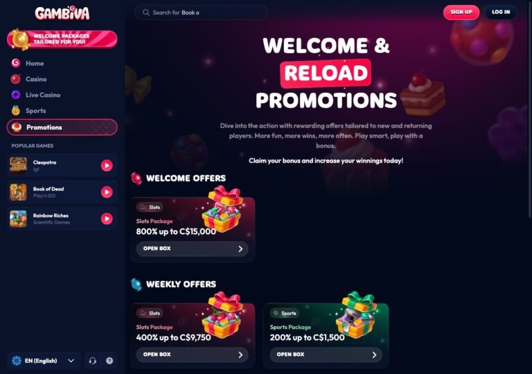 Ongoing promotions matter as much as the welcome. Gambiva’s rotating calendar covers: