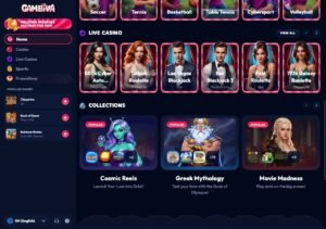 The Collections feature bundles slots by theme – Cosmic Reels, Greek Mythology, Movie Madness – which is a small UX touch that helps when you’re in the mood for a specific type of game rather than hunting by provider. Free spin offers rotate weekly and are tied to featured titles rather than a general-purpose spin pool.